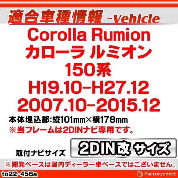 ca-to22-456a2DIN改 2DINアダプター変換 COROLLA Rumion カローラ ルミオン(150系 H19.10-H27.12 2007.10-2015.12) TOYOTA トヨタ ナビ取付フレーム オーディオフェイスパネル (車 カスタム パーツ 内装 ドレスアップ ナビフレーム カーナビ ナビゲーション)